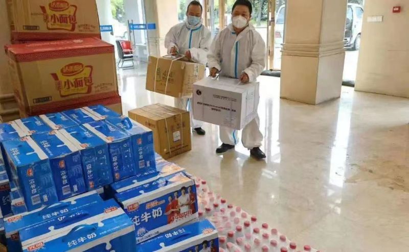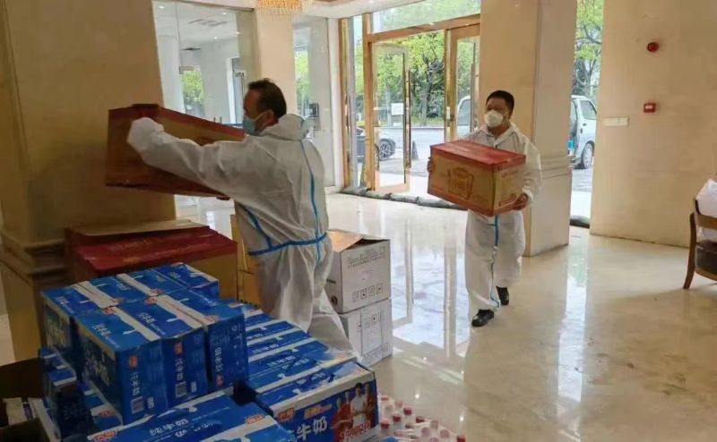 为了在最短时间内完成第一批物资采购的紧急任务,后勤保障队员们决定分工协作,一方面在公司范围内紧急联系到2台生活物资派送专用车辆,及时做好车辆通行证办理、加油等用前准备工作;另一方面通过各种渠道千方百计联系应急生活物资供应渠道。经过公司上下和队员们的不懈努力,终于在当天下午就联系到一个应急物资供应点集中预订了牛奶、方便面、面包、八宝粥等生活物资300余箱,暂时解决了第一批集中隔离人员的生活物资问题。