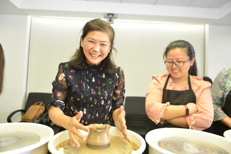 9月28日下午,陶艺DIY活动开始,“姐姐们”又立刻变成艺术家,全情投入,或是手执笔墨在瓷白素胎上细细描画,或是手捧泥胚在机器上大胆创作,纷纷在这项传统艺术活动中寄托了新的深情和祝福。从古至今,尽管人类对美的鉴赏千差万别,但都能以某种方式获得对美的享受。中国的陶瓷艺术年代久远、样貌繁多,在世界历史上一直具有相当的代表性,而中秋节吃月饼、庆团圆更是自古以来生生不息、弥足珍贵的文化习俗。通过这两项活动,员工们近距离体验了传统文化的新魅力,并借此遥寄思念,祝福祖国。