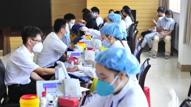 早上9点不到,位于公司科技楼六楼的献血现场已是人头攒动。志愿者们在工作人员的引导下,有序进行排队登记、体检、血样筛查等环节,通过筛查后,大家分批进行采血。活动全程认真落实疫情防控相关要求,现场秩序井然。