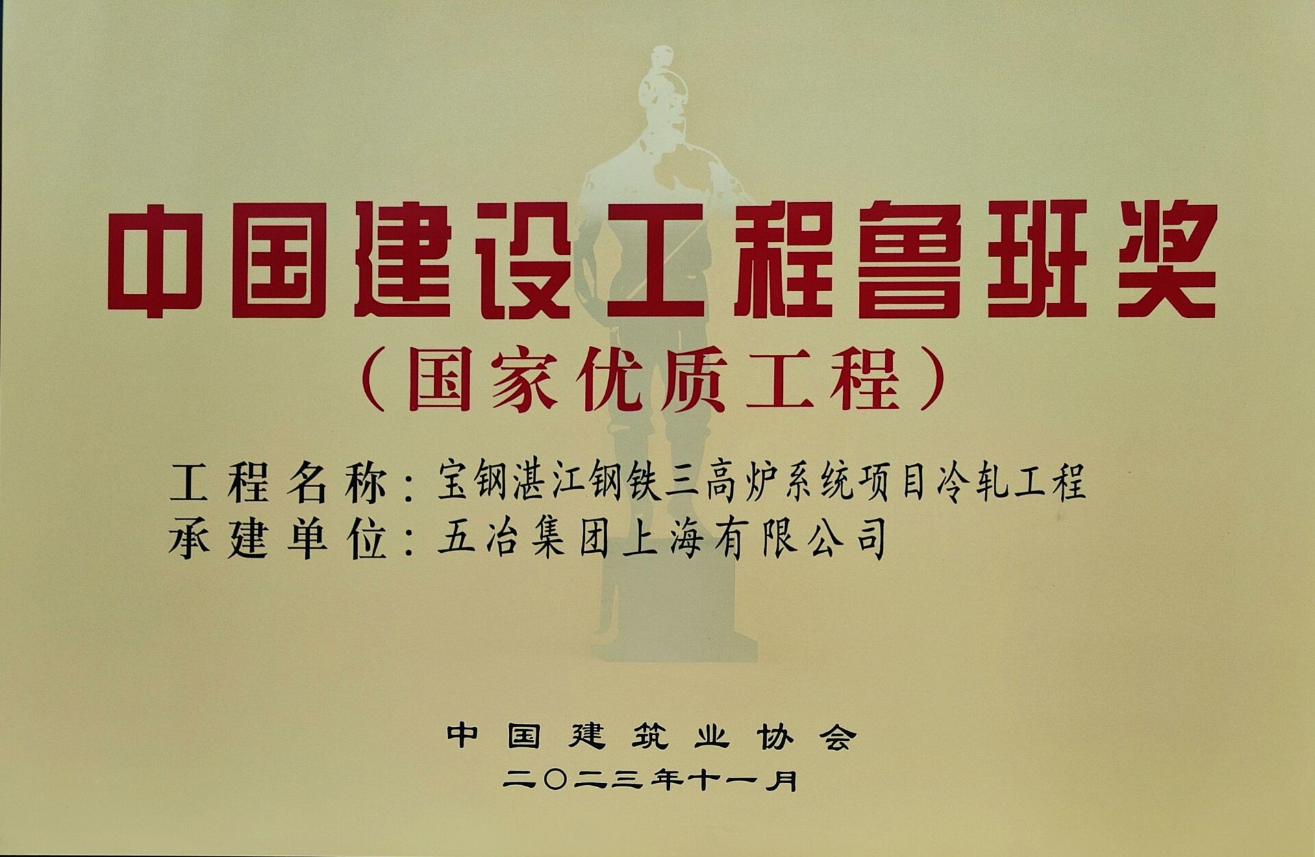 宝钢湛江钢铁三高炉系统项目冷轧工程2022~2023年度中国建设工程鲁班奖