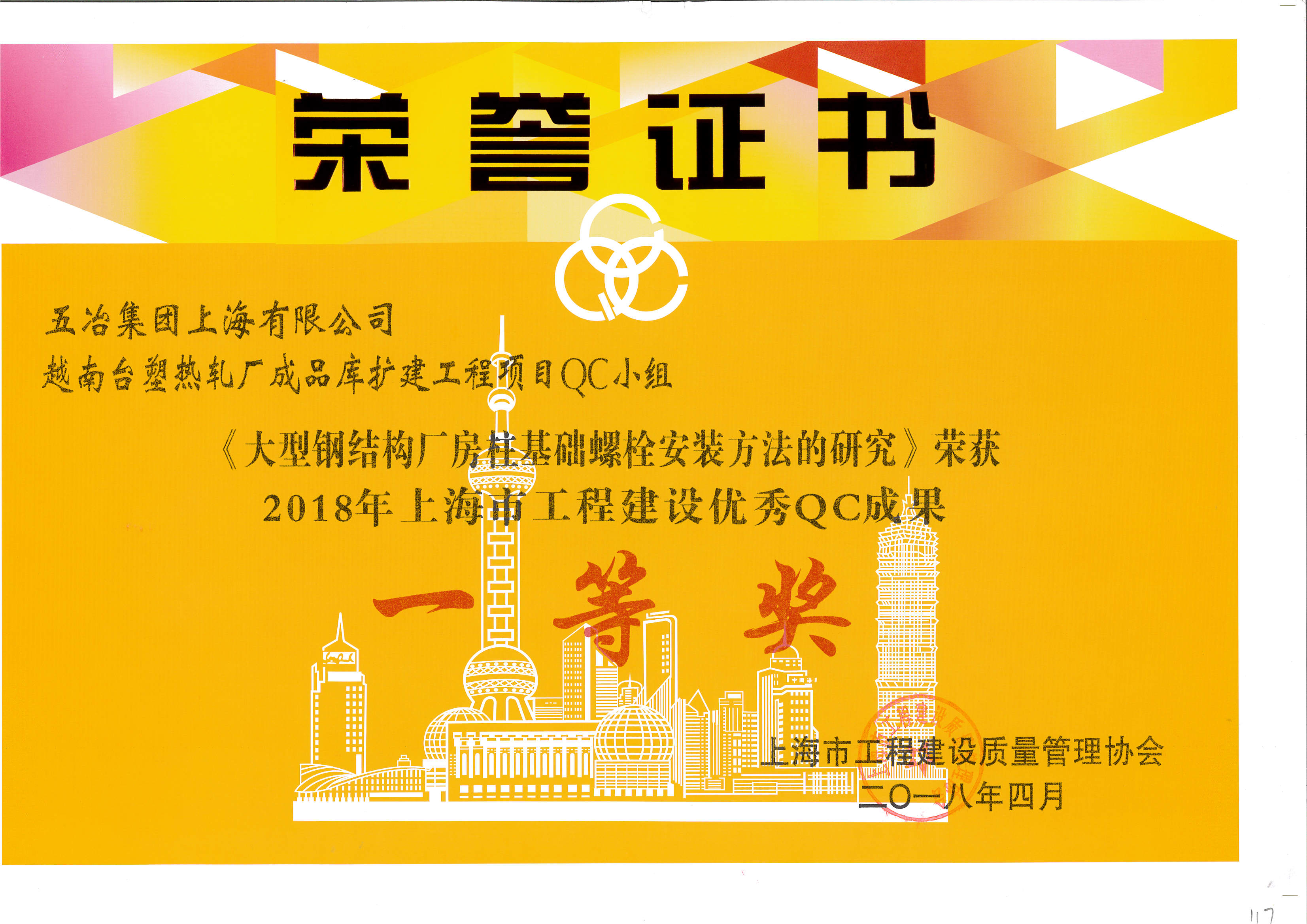 越南台塑热轧厂成品库扩建工程项目QC小组大型钢结构厂房柱基础螺栓安装方法的研究