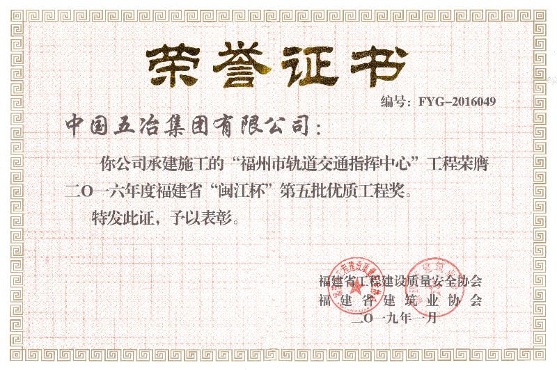 福州市轨道交通指挥中心获2016年福建省“闽江杯”