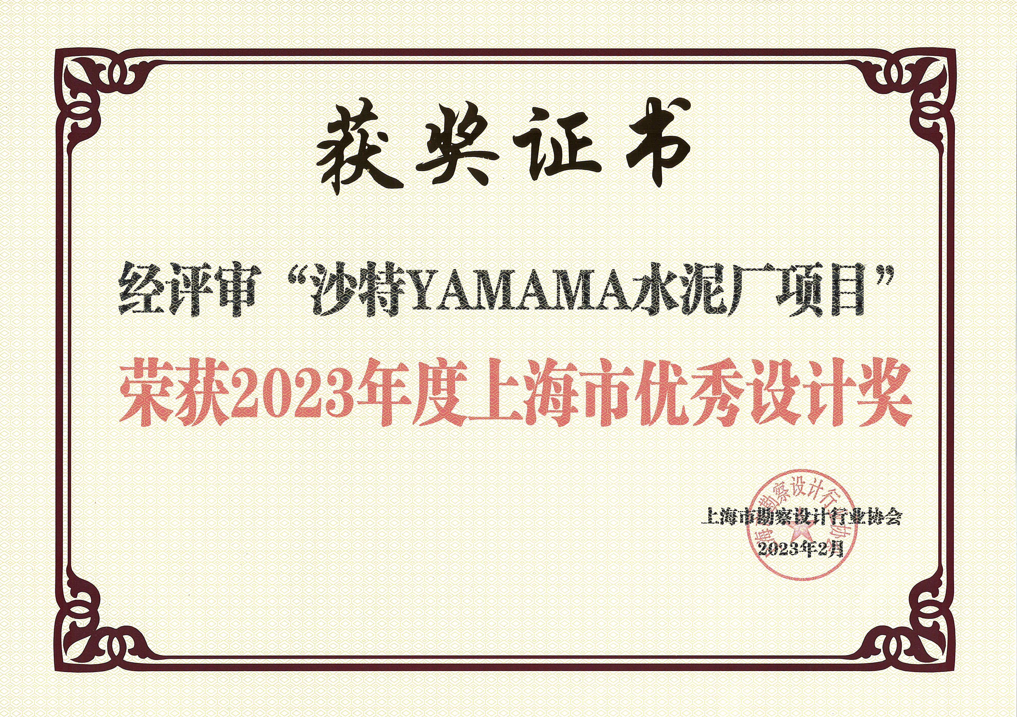 建筑设计研究院沙特YAMAMA水泥厂项目荣获2023年度上海市优秀设计奖