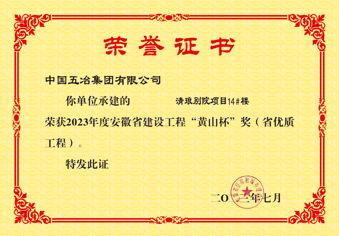 清琅别院14#楼项目荣获2023年度安徽省建设工程“黄山杯”奖
