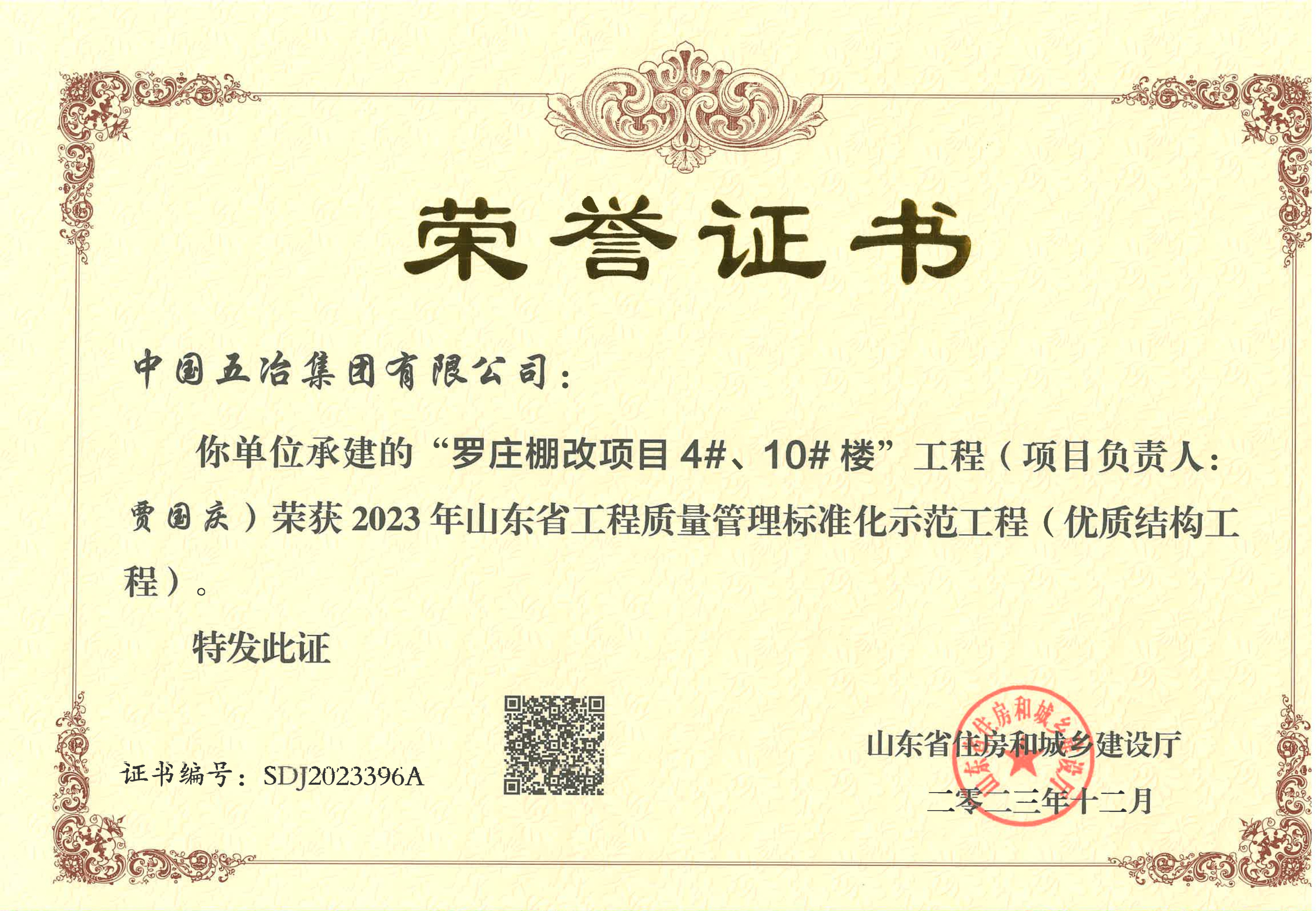 华北公司罗庄棚改项目4#、10#楼工程荣获山东省建设...