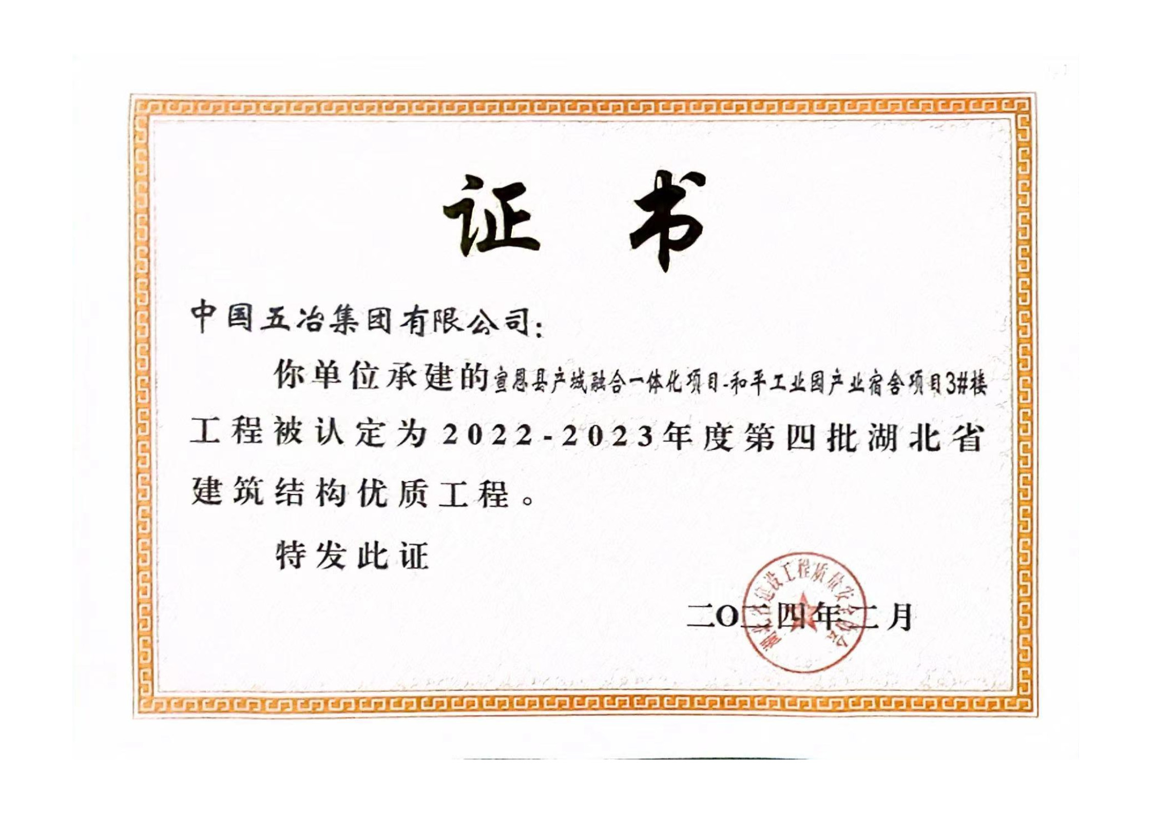 中国五冶南阳宏景丰实苑项目荣获河南省优质结构工程