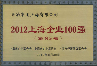 五冶集团上海有限公司2012年再次入围上海企业100强