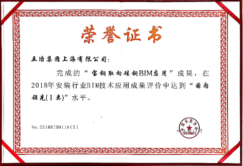 2019年6月12日,安装行业BIM应用与智慧建造经验交流会在成都成功召开,会上,宣布了《2018年安装行业BIM技术应用大赛》成果评价结果并颁发了奖杯和荣誉证书,我司《宝钢取向硅钢项目BIM应用》被评为国内领先(I类)成果,这也是我司首次在中国安装行业BIM技术大赛中获得I类奖项。本年度安装行业BIM技术应用成果评价共收到来自103家单位的169项有效成果作品项目,秉承公平、公开、公正的原则,邀请来自全国先进的施工、设计院、软件服务厂商等单位共计15名BIM技术人才专家参与初评、复评、现场发布等评审程序。