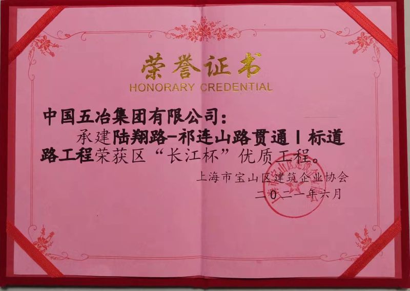 近日,陆翔路项目传来喜讯,交通市政公司陆翔路-祁连山路贯通I标道路工程荣获上海市宝山区“长江杯”优质工程奖。