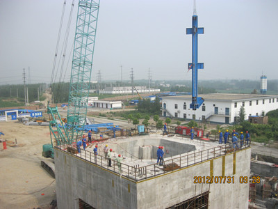 该项目位于河南省平顶山市石龙区河南中鸿集团煤化有限公司焦化厂区内,是河南中鸿集团煤化有限公司为了节能环保而投资建设的,投产后干熄焦装置处理能力将达到170t/h。干熄焦装置主体关键设备由国外引进,辅助及外部设施由国内配套。建设主要内容为:170t/h干熄焦本体(含锅炉)1套、干熄焦综合电气室、干熄焦除氧水泵房、干熄焦环境除尘地面站及管道系统、干熄焦运焦系统、牵车台及焦罐检修站、电站、循环水泵站、干熄焦系统供配电设施、自动化控制及仪表设施、通讯设施、干熄焦区域消防设施、干熄焦区域照明系统、排水系统、综合管网系统、干熄焦区域内单体设施的供暖系统等。此次吊装首先对干熄焦本体钢结构进行吊装,然后对供气装置进行吊装。本体钢结构的吊装主要是对六根“十”字型钢柱的吊装,总工程量为61.76t。