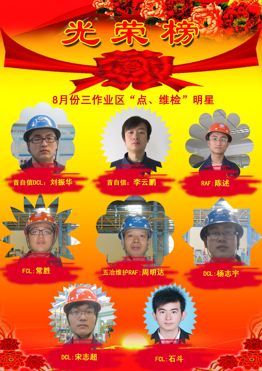 2012年9日26日,五冶检修华北分公司迁安项目部传来喜讯,周明达和杨志宇两名员工获得首钢冷轧作业部三作业区八月份“优秀维检明星”称号。