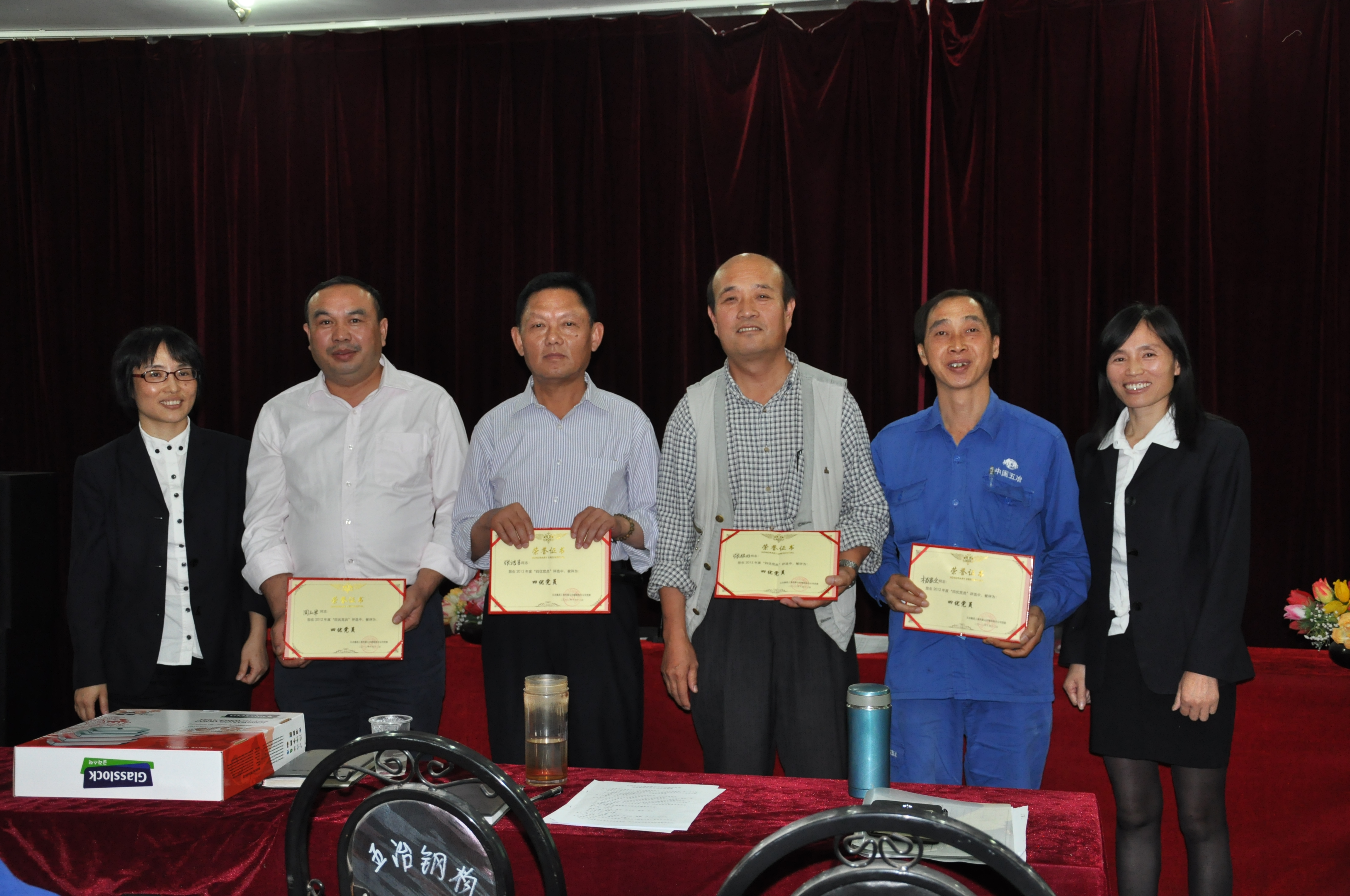 当公司党委书记陈金玉宣布杨家全、张根田、张洪喜、周玉军四位同志当选公司2012年度“四优党员”时,会场上响起了雷鸣般的掌声,主题活动进入了第四个环节即颁奖环节。陈金玉为获奖者一一颁发荣誉证书和奖金,主持人随即要求每位获奖者发表简短的获奖感言。获奖者或谦虚、或朴实、或紧张的即兴感言,再次引来大家阵阵掌声,将主题活动又一次引向高潮。四名“四优”党员表达出的在今后工作中将时刻以“四优”标准严格要求自己,为公司创新提升、转型发展做出更大贡献的共同心声,更是让在场的全体党员感受到了强烈的正能量。