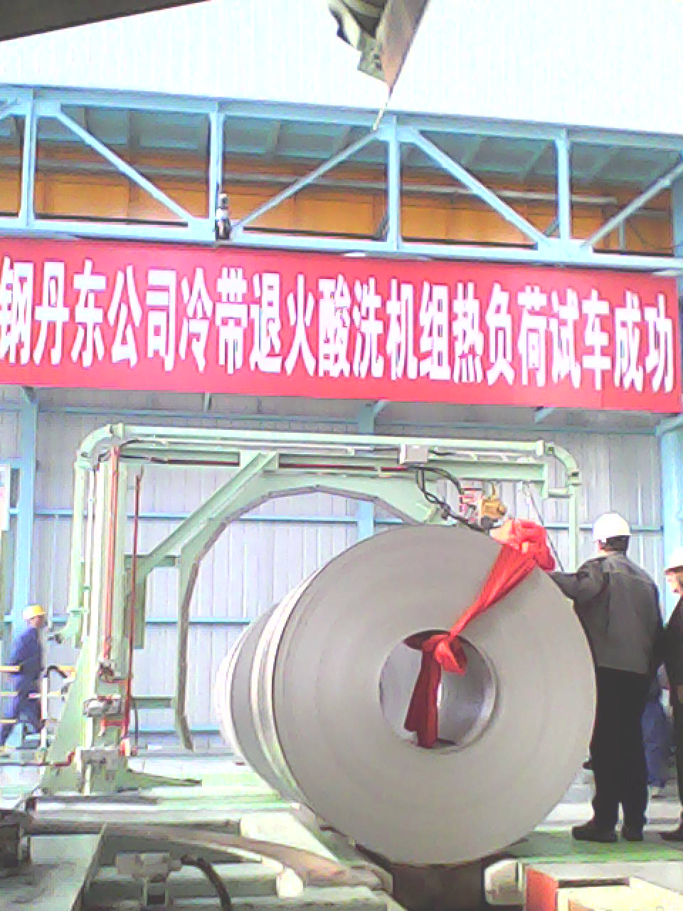本钢不锈钢丹东冷轧——冷带退火酸洗工程位于丹东东港市临港工业园内,工程占地面积30万平方米,总投资200000万元,年产能力19万t/a。主要工艺设备包括:钢卷准备段、入口段、脱脂段、入口存放段、退火炉、中间段、酸洗段、出口段设备。主要设备均由法国、德国、日本等国引进。本工程2011年2月15日开工,同年7月30日完成实体安装,后因生产用电未进厂,至2012年7月10日机组正式受电,经过项目部全员三个多月的艰苦奋斗,机组热负荷试车取得一次性成功,标志着全线设备调试圆满结束,顺利完成该工程各项施工节点,为本钢不锈钢提升市场占有率提供有力保障。 (张升伟)