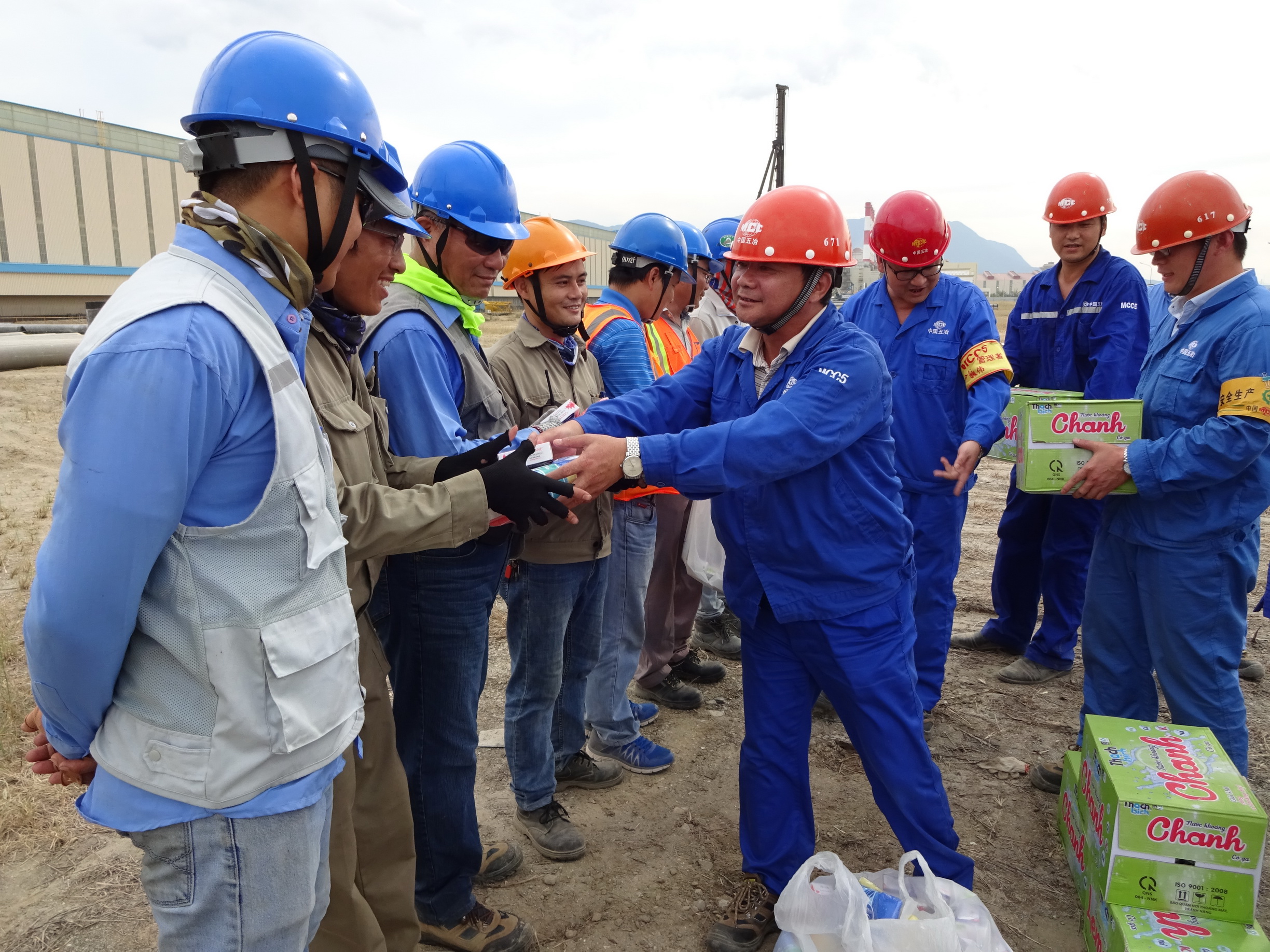 越南正值连日高温,施工条件较为艰苦。为切实维护项目现场员工的生产安全与身心健康,越南台塑热轧厂项目部积极响应公司工会夏季防暑降温的号召,为一线员工发放了降暑用品和清凉饮料。项目经理魏伟一行再三强调生产过程中的安全问题,叮嘱工人们注意防暑降温。