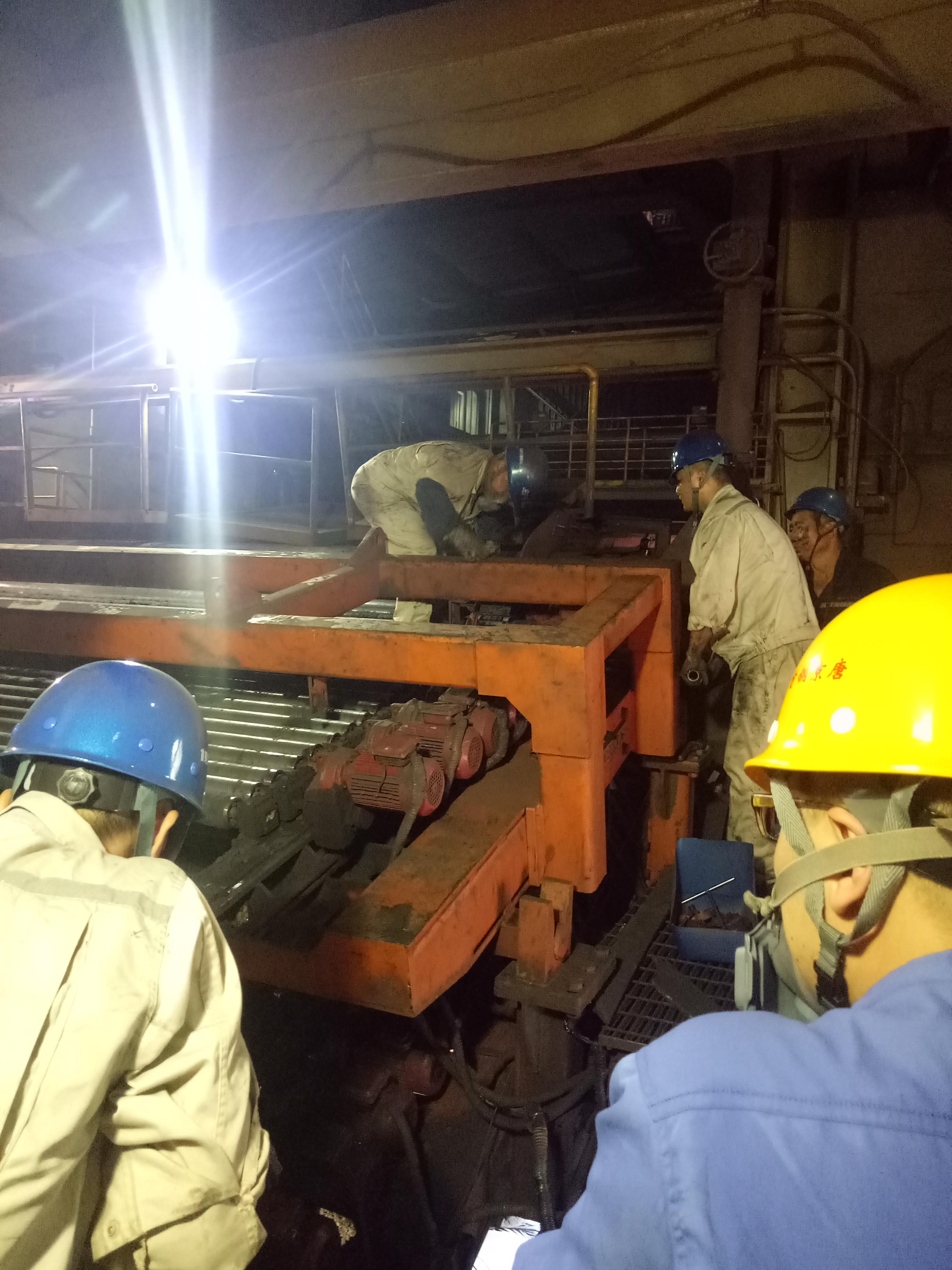 该项目位于河北省唐山市曹妃甸十一加首钢京唐厂区内,主要施工包括焙烧机倒修台车10台、PD-3皮带机机头增面滚筒更换、焙烧机检修、双层辊筛更换调整等多个项目,工期仅有24小时,大修面临时间紧、任务重、技术要求高。