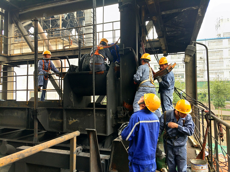 该项目位于河北省承德市承钢厂区内,中滦煤化工有限公司是由开滦集团和承钢集团共同控股经营,其焦炭产品直接供给于承钢炼铁生产。此次年修计划工期50天,各专业投入人员90余人,共计承担机械检修项目和电仪项目200多项。主要包括提升机提升减速机解体检查、提升机钢丝绳更换;装入装置炉盖、水封槽更换;排出系统旋转密封阀、各补偿装置更换;循环风机转子更换、壳体补焊;一次除尘外壁查漏补焊、水冷套管更换。另有干熄焦炉内耐材专项大修项目:牛腿砌筑、预存段及冷却段耐火砖检查砌筑、一次除尘重新砌筑、二次除尘内部铸石板砌筑等。