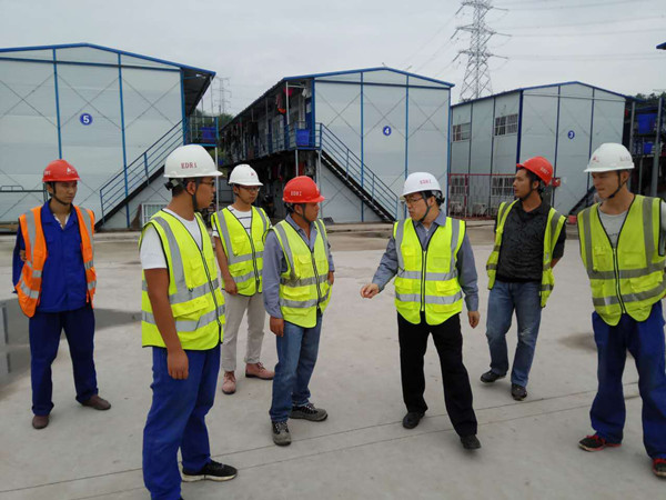 高文建首先对施工现场及大临生活区进行了全面检查,并对食堂卫生、安全用电、塔吊使用、支模体系、外脚手架搭设等情况提出指导意见和要求。随后,在项目安全管理要求及维稳工作部署专题会上,他对项目部管理人员和分包单位负责人提出严格的维稳工作要求,并对具体安全管理工作进行了部署。最后,他代表公司对双节期间坚守在一线岗位上的所有员工进行了亲切慰问。
