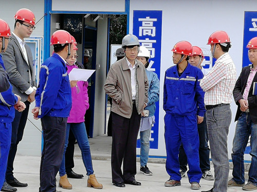 重大办潘玉龙主任,区政府督查室夏主任,机管局张局长等一行来到施工现场,查看了现场的基本状况,并听取了项目经理刁腾达对项目前期工作、现阶段工程进展、安全质量、文明施工等情况的汇报。潘玉龙对目前的工作表示肯定,感谢五冶员工的辛勤付出,并要求在十九大召开之际,嘉定项目部抓实安全红线,牢守质量底线,不断加强安全生产工作力度,构建和谐稳定的周边环境。他相信以中国五冶的雄厚实力,定能够顺利完成工程目标。