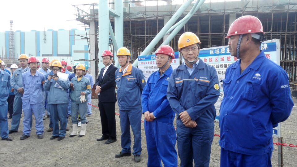 参观人员在宝钢投资部部长吴章维的带领下,对宝钢取向硅钢产品结构优化(一期)标段二工程环形炉设备基础进行参观、交流。观摩人员对环形炉的同心度和弧线度控制、侧壁预埋铁件的平整度控制、混凝土浇筑质量控制的效果表示肯定。