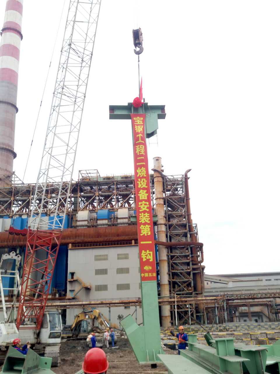 近日,宝钢烧结整合大修改造工程1#烟气净化下骨架钢柱成功吊装就位。