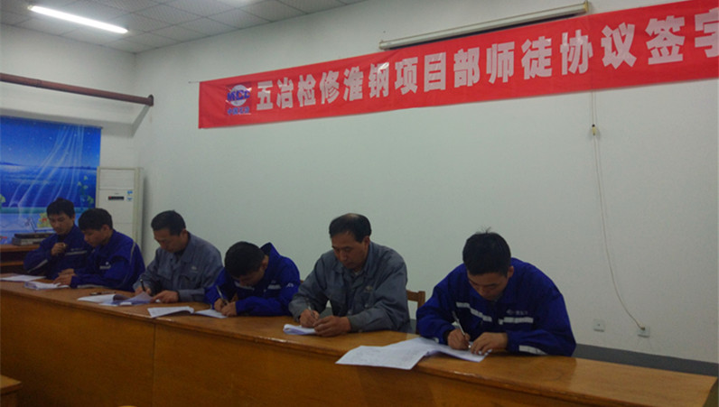 签订仪式结束后,师徒代表作表态发言,师傅表示要在日常工作中指导锻炼徒弟,达到共同发展、共同进步的目的。徒弟表示感谢项目部提供发展的平台,一定向师傅虚心学习业务技能和工作作风,做到理论与实践结合,提高自身的综合能力。