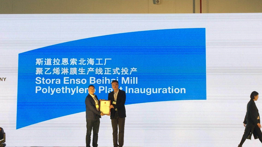 2017年12月19日,斯道拉恩索北海工厂聚乙烯淋膜生产线正式投产。这是继2016年斯道拉恩索包装纸板机和漂白化学热磨机械浆(BCTMP)生产线投产后,斯道拉恩索集团在中国北海的又一重大投资投入运营。该项目的斯道拉恩索北海聚乙烯覆膜车间8万吨PE由中国五冶集团北京分公司承建。