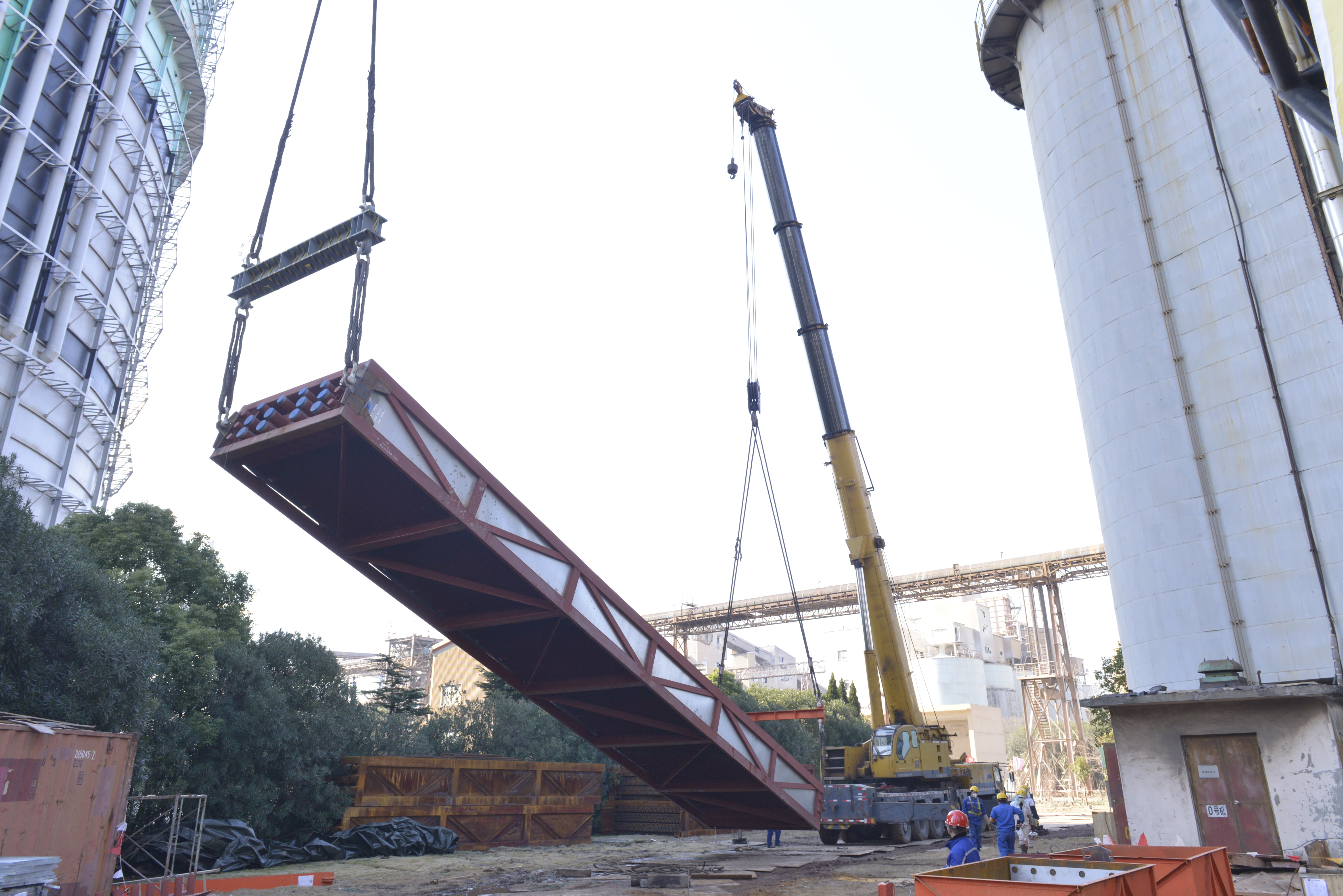 1月9日,由上海机电公司承建的宝钢电厂技改项目顺利完成宝钢电厂0号机组余热锅炉低压段换热面新模块吊装施工,这是继宝钢电厂0号机组旧热面模块拆除节点后的又一重大节点,新热面模块高18.7m,长3.7m,宽1.3m,重达72吨,吊装难度较大。