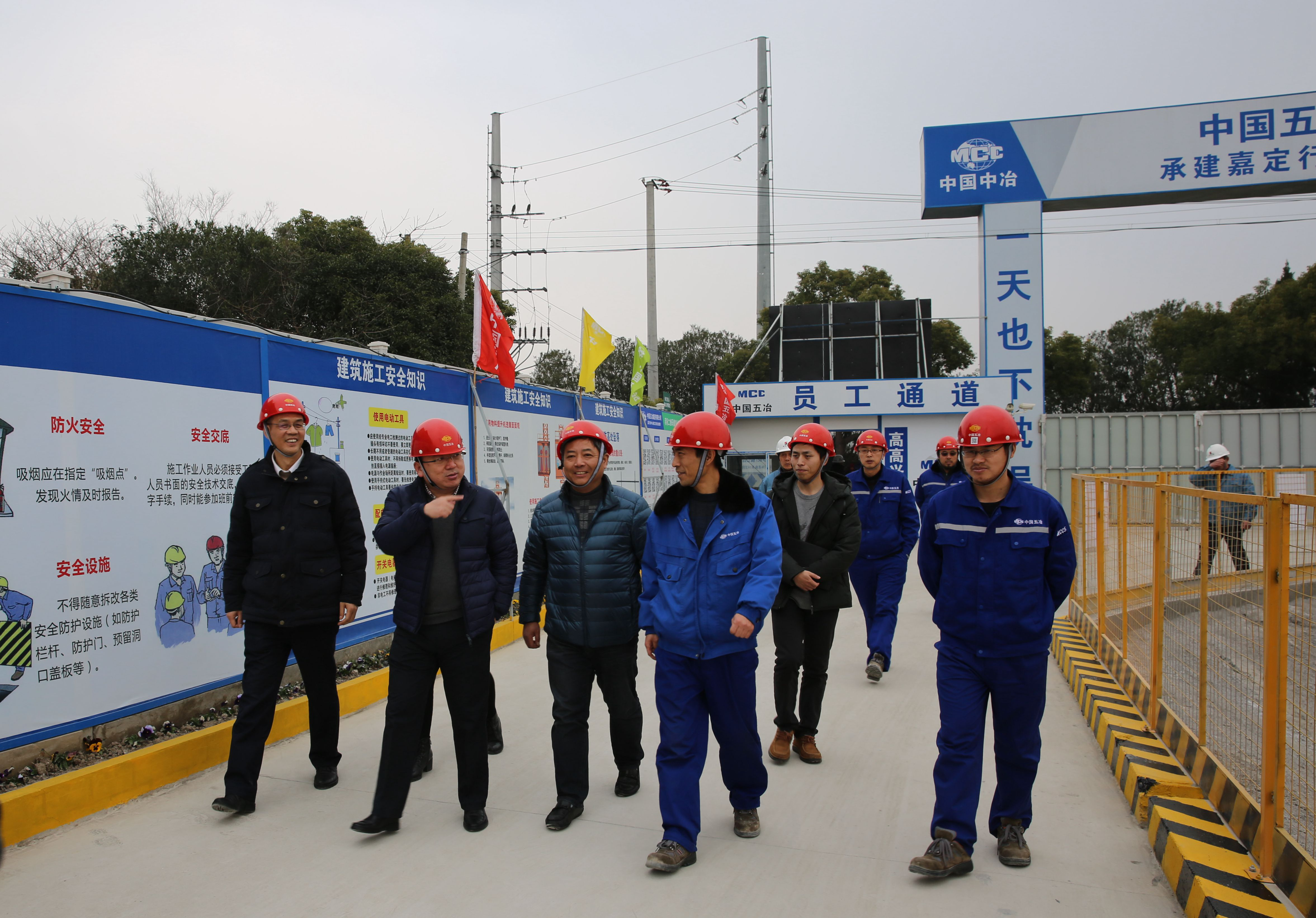 2018年1月18日,上海市嘉定区建交委蔡主任、机管局张科长一行到中国五冶集团承建的嘉定行政服务中心新建工程项目视察指导工作。上海有限公司市场部副经理李军及项目经理部全体班子成员陪同。