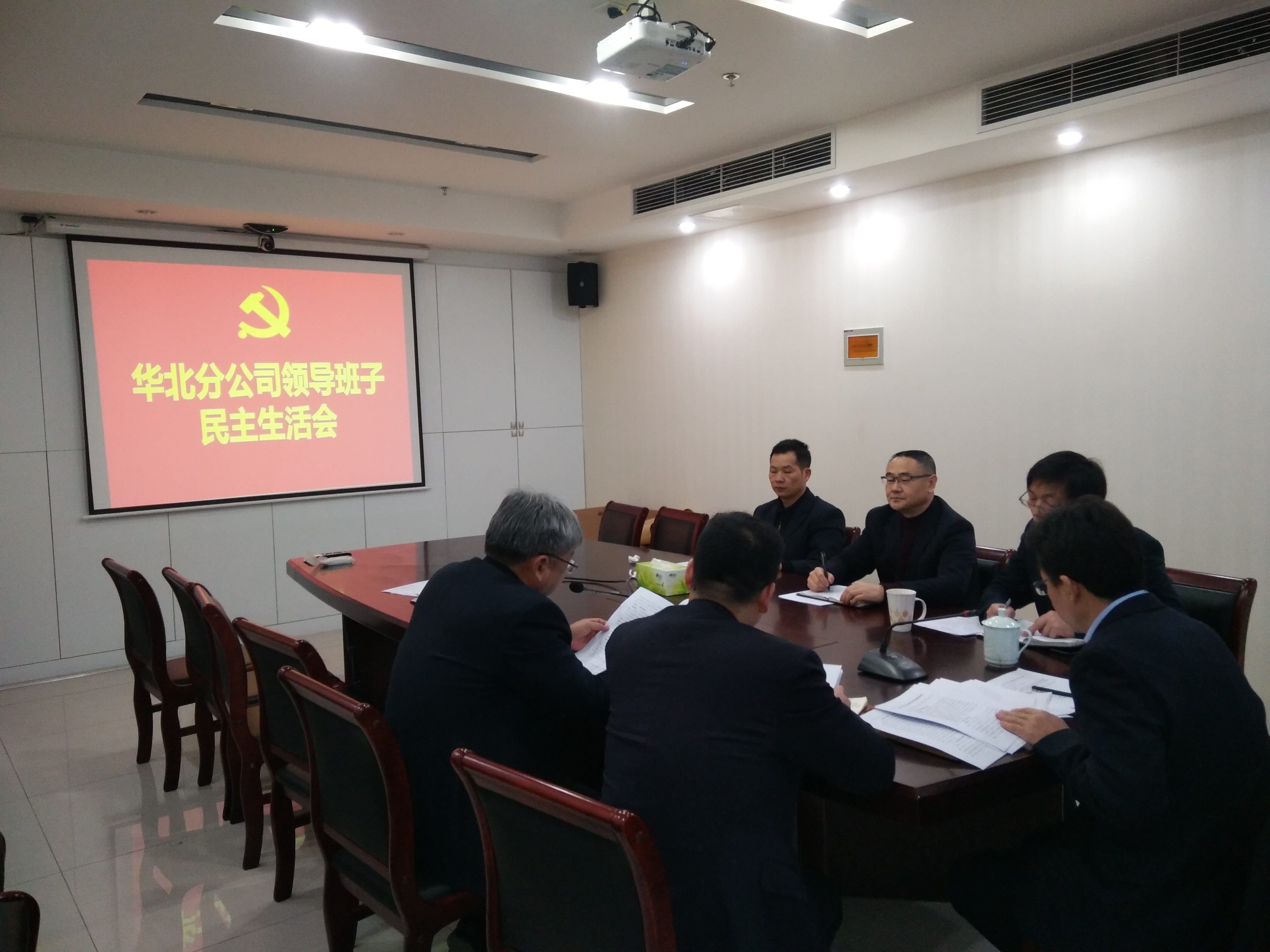 2月4日上午,华北公司召开2017年度领导班子民主生活会。会议由华北公司党总支书记、经理马仕伟主持。有限公司副总经济师陈金玉、综合事务部经理邱波列席会议。