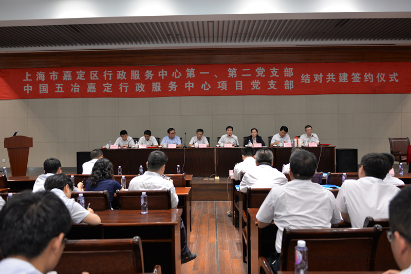 为了庆祝中国共产党诞生97周年,不断增强基层党组织创新力、战斗力和凝聚力,7月2日,五冶集团上海有限公司嘉定行政服务中心项目党支部与嘉定区行政服务中心党支部共建签约暨启动仪式在嘉定区举行。五冶集团上海有限公司党委副书记、副总经理倪治寿、党群工作部副部长,嘉定区行政服务中心党委副书记、主任滕云、党委副书记、纪委书记陈叶、副主任白俊英,双方党支部全体党员和入党积极分子参加了仪式。