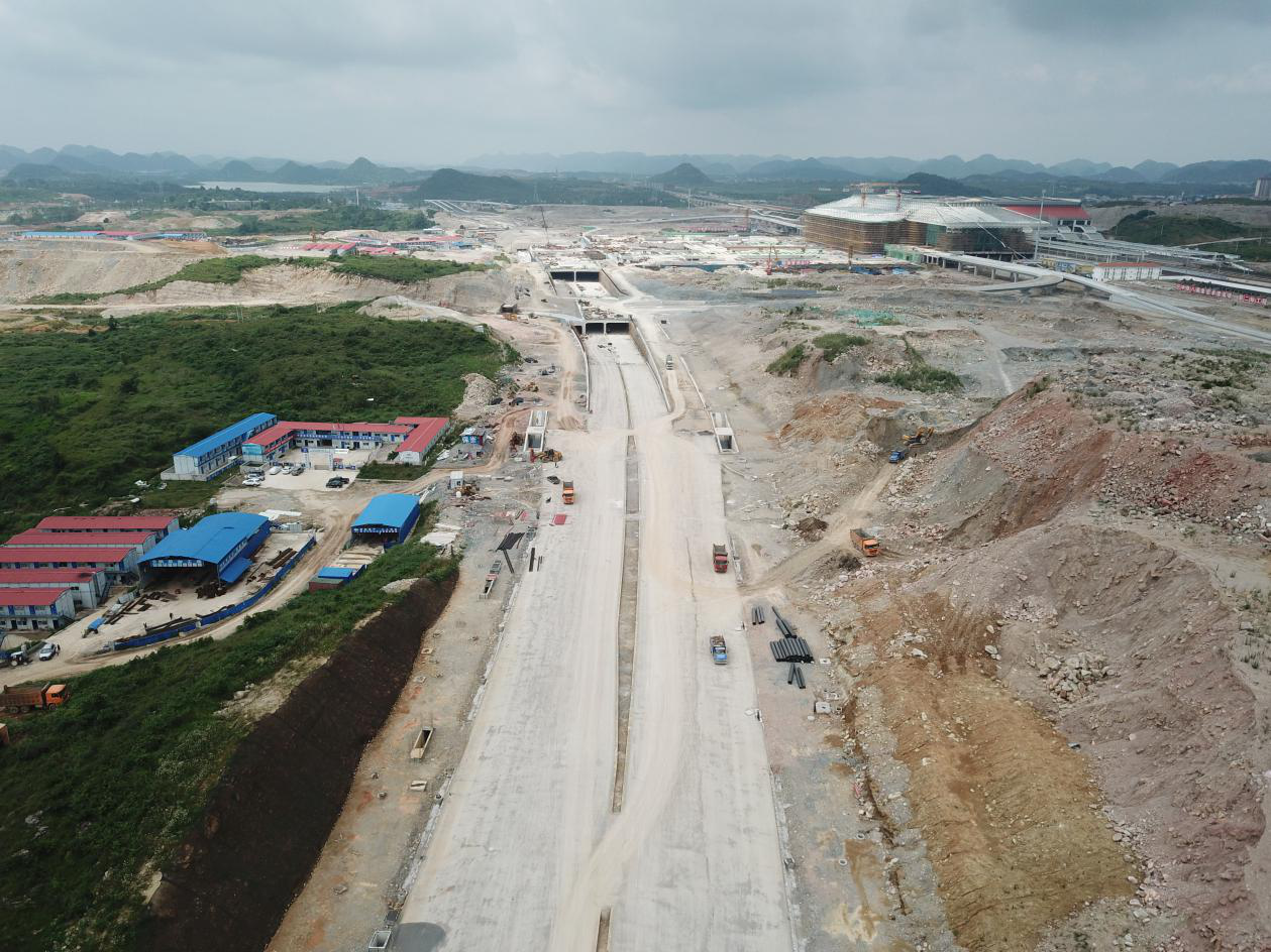 贵安高铁站配套市政路网项目是贵安新区中心区重点工程,道路全长约1.672km,道路标准段为双向8车道城市主干路,设计车速60km/h,宽度为55m。其中地下结构物主要包含,双向6车道的下穿隧道,其长度1035m、三舱式综合管廊长1575m等。