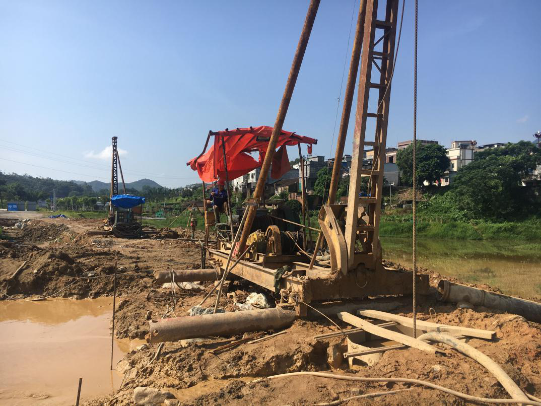 由于景观桥右侧为河库,左侧为鱼塘,地下水位线高,孔内出现承压水,使得本次桩基工程施工难度大。针对此问题,项目部研究分析采用控制进尺速度,选用较大相对密度、粘度、胶体率的泥浆或高质量泥浆等措施,最终使得桩基工程顺利完成。(魏金峰 图/文)