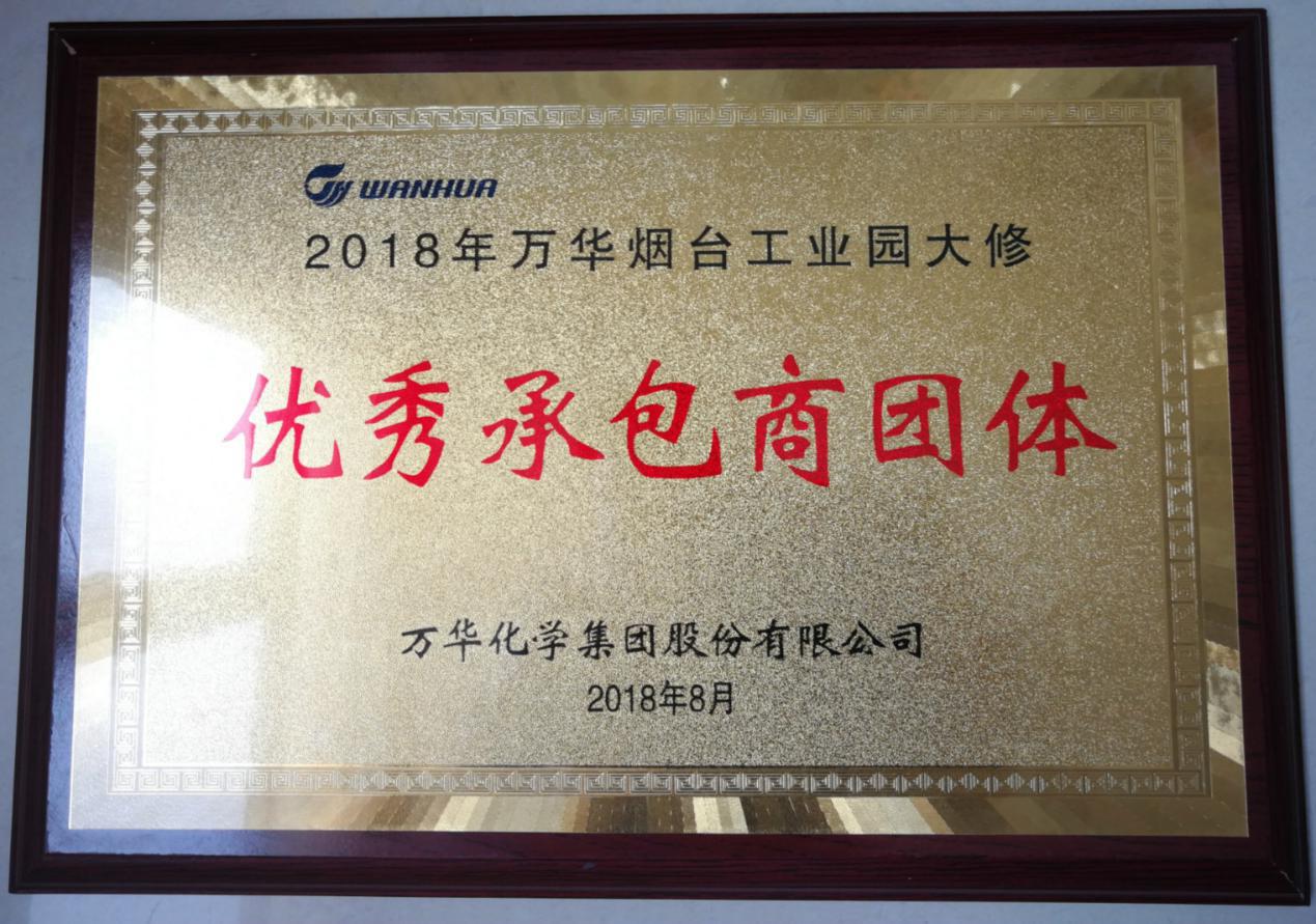 本次大修是烟台万华新建工业园投产以来首次大修,整体大修耗时95天。检修宁波分公司承接多元醇、环氧丙烷、丙烷脱氢三个区域共746项静设备维修,施工耗时40天,高峰时间投入超过600人,平均500人左右。经过前期充分的筹划和准备,在安全、质量零事故的前提下,按时圆满完成了此次大修。得到了业主各层的信赖和好评,并荣获“优秀承包商团体”的荣誉称号。
