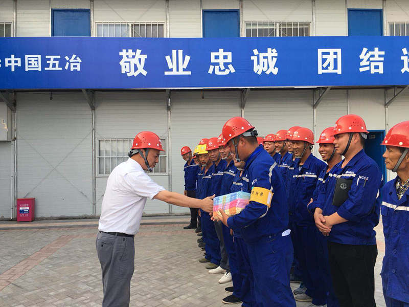 程先云为项目部全体管理人员及一线施工工人送去了矿泉水、毛巾等防暑降温物品,对项目部全体人员的辛勤工作表示感谢。他指出,当前仍然处在高温期,项目部一定要重视高温期间安全生产工作,落实好有关安全作业措施,做好防暑降温保障工作,尤其要关心好一线施工工人的身体健康问题,确保不发生任何安全生产事故。他表示,希望项目部全体人员坚定信心、齐心协力、攻坚克难,秉承“一天也不耽误、一天也不懈怠”的中冶精神,认真践行“诚信社会为本、客户满意为荣”的企业经营理念,为将京东项目打造成为经得起历史考验的精品工程、示范工程而不懈努力。