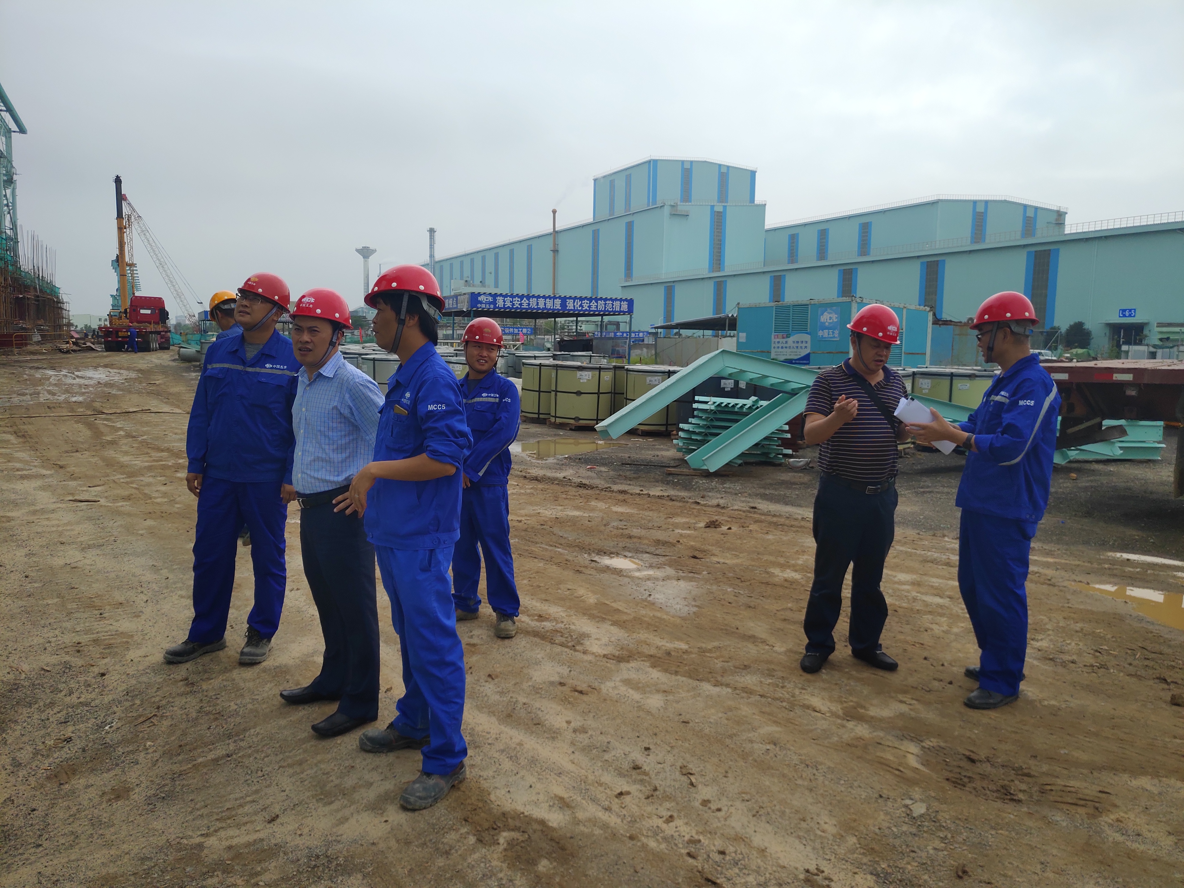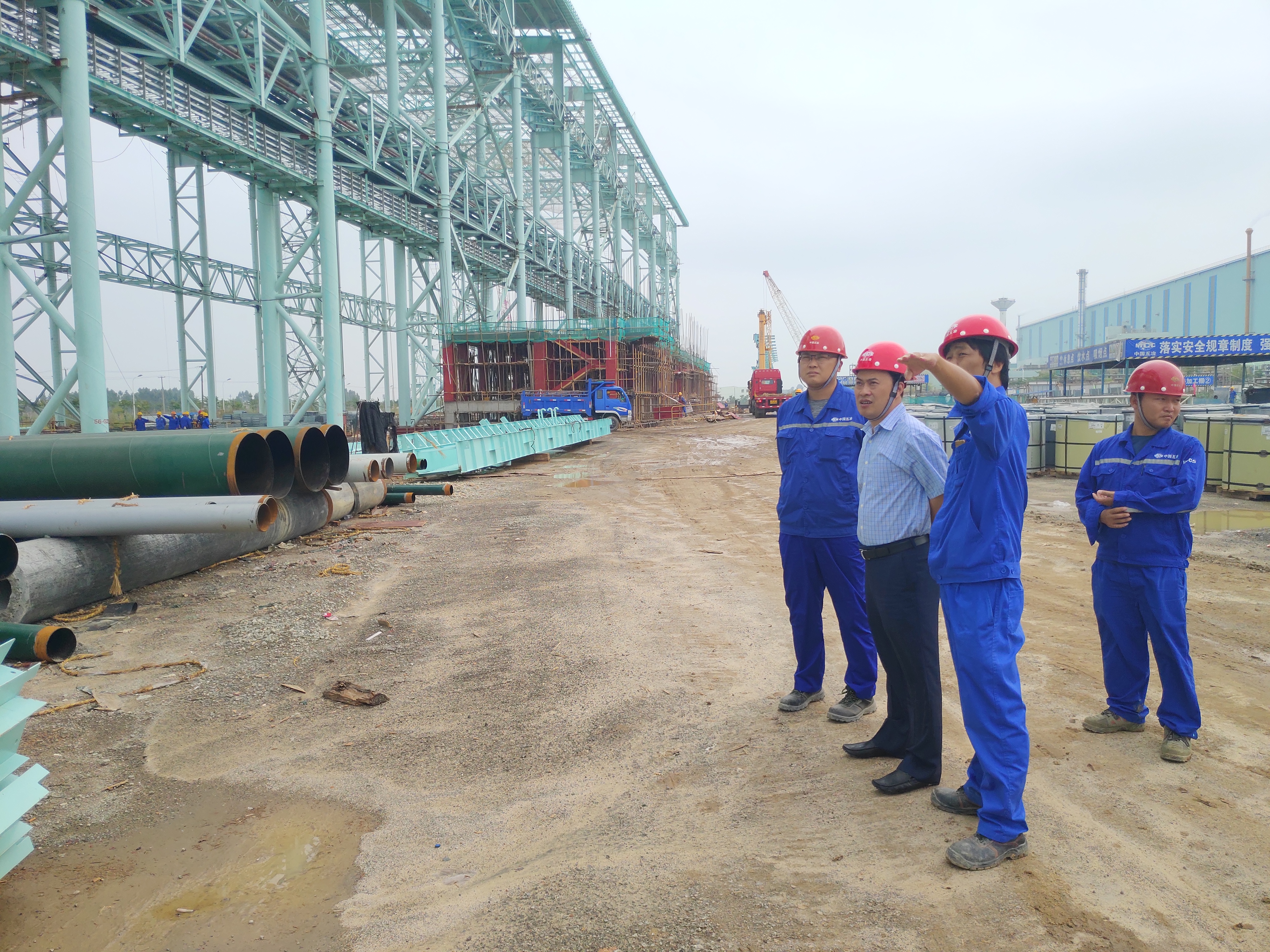 10月16日上午,五冶集团上海有限公司副总经理程先云一行到宝钢湛江高强钢项目指导工作,五冶宝钢湛江分指部指挥长沈俊清一起陪同。他们首先听取了项目部施工经理陈峰对整个项目的进展及履约情况,并详细的询问了目前项目面临的困难。