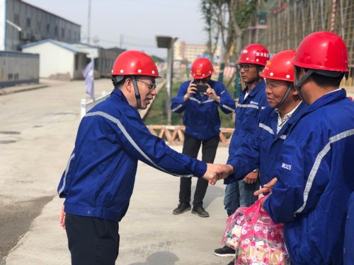 马仕伟一行为一线员工送去了防暑降温用品,开展了高温慰问。华北公司副经理李先南陪同。(左友舟)