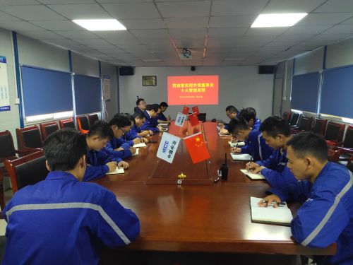 7月24日,华北公司组织机关全体党员干部学习贯彻落实集团年中工作会精神及董事长十大管理思想。会议由党总支书记、经理马仕伟主持。