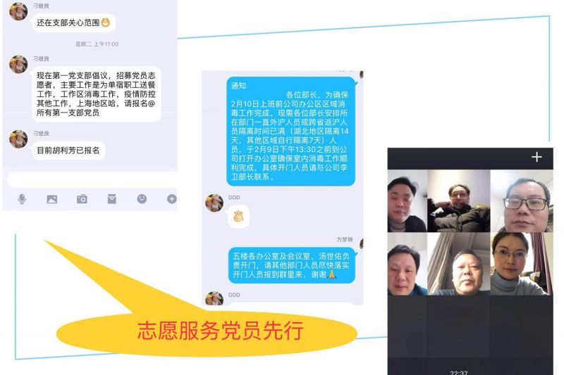 公司安全环保部李卫自节后返沪隔离期满就变成一个忙碌的人,2月7日接到公司办公区域环境消毒杀菌任务后,除了抓紧落实各项防疫物资外,还要针对公司机关员工、分公司办公区以及项目复工等特点制定疫情防控方案。“平时主要抓生产安全,突如其来的公共卫生安全着实对我们是一个考验,面对新形势,再难也要上,因为还有更多的兄弟依然坚守在一线,我们要为他们的安全保驾护航!”李卫很朴实的告诉我们。物资部单伟在会上说2万只口罩已发货确定9号能到,正好我去收货,下午和大家一起对办公室内环境进行消毒杀菌,对所属办公区域、室内以及各个卫生死角进行打扫,对各个场所进行全面消毒,确保防疫工作落到实处。并提前做好节后上班人员防疫物资分配及防控措施。支部群内发动志愿者为节后果园单宿返沪隔离员工做好后勤服务的消息,一分钟就完成了志愿服务报名,并提前做好了后勤工作准备,为他们购买生活必需品、宣传指导防控以及负责一日三餐的派送工作。困难面前坚决做到党有号召、群团组织有行动的优良传统。