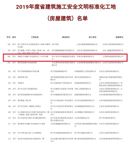 近日,由山东省住建厅组织评选的2019年度山东省建筑安全文明施工标准化工地名单正式公布。交通市政分公司承建的济宁南杨庄片区棚户区改造项目C-4#住宅楼获评为“2019年度山东省建筑安全文明施工标准化工地”。
