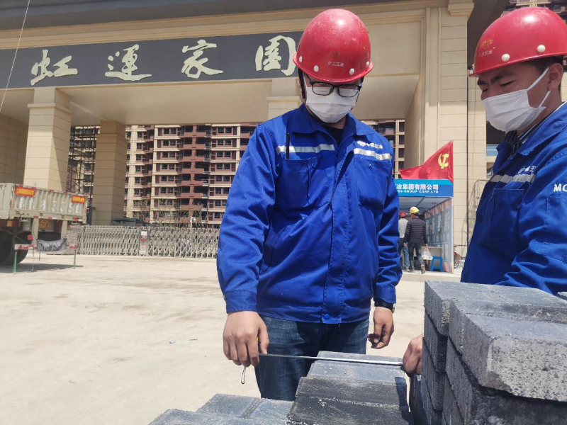 虹运家园项目主体及室外工程道路、管网已全部完成,为了能让回迁户早日住上新房,825名项目人员加班加点进行室外绿化铺装及门窗护栏安装。施工质量是一切的保障,项目管理人员会对每批铺道砖进行仔细的验收,并随时复核铺装道路尺寸,让居民住得既安心又舒心。