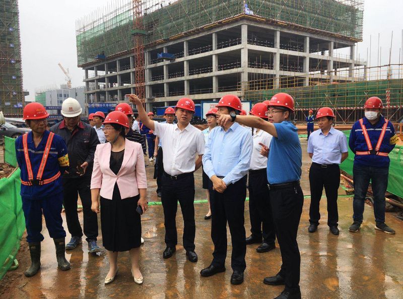 5月27日,萍乡市委书记李小豹一行莅临由建筑公司承建的赣湘产业园项目现场调研项目建设情况。萍乡市委常委、秘书长黄强,副市长杨劲松,市委副秘书长、办公室主任彭佐林,市委副秘书长、政研室主任郑锐,市发改委党组书记、主任黎春源,市工信局党委书记、局长汤萍方,上栗县委书记肖妮娜等相关人员陪同调研。
