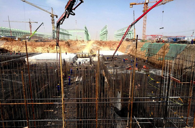 2020年5月28日13点,随着混凝土输送泵的一声轰鸣,太行钢铁项目粗精轧基础底板混凝土开始浇筑,经过全体项目人员的努力奋战,至5月29日18点10分,浇筑顺利完成,混凝土浇筑量总计1833方,为太行钢铁ESP项目首个浇筑超过千方的单体。