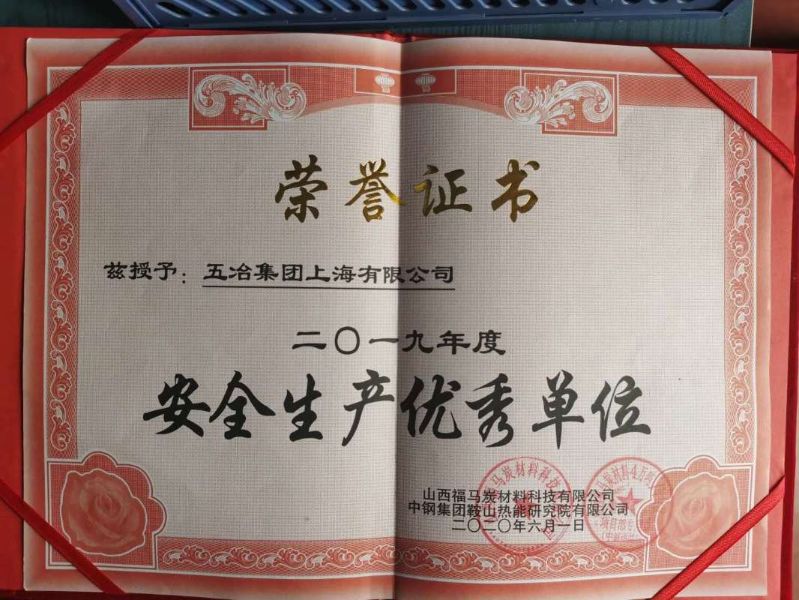 6月8日,在全国第19个“安全生产月”到来之际,工程技术服务公司喜获山西福马炭材料科技有限公司、中钢集团鞍山热能研究院有限公司二0一九年“安全生产优秀单位”荣誉证书。