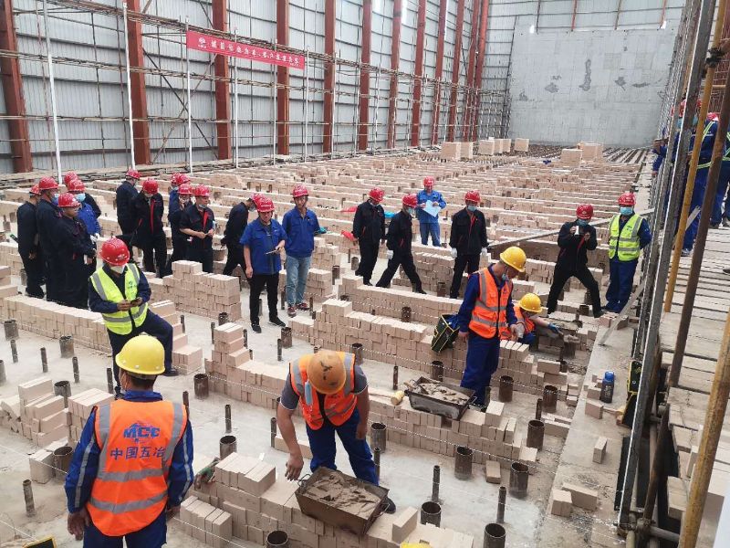 三公司主要负责1#、2#焦炉和煤塔、干熄焦、化产等单元的土建、筑炉、安装一系列工程。该项目面临专业多、工程量大而杂、工期连续紧凑等问题。为保证1#焦炉砌筑工程顺利开工,项目部克服新冠疫情、筑炉工紧张、耐材供应不到位等多种不利因素的影响,精心组织安排,多方想法组织劳动力进场,并对施工人员进行技能考核和安全技术交底培训,确保焦炉砌筑的高质量完成。