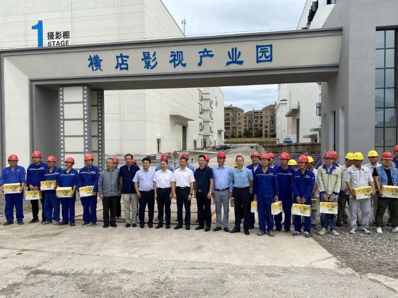 烈日下,朱志杰一行将清凉饮料、防暑药品、毛巾等亲手递到施工人员手上,感谢他们为横店影视产业园项目建设洒下了汗水、付出了辛劳,叮嘱他们要注意身体和安全生产。