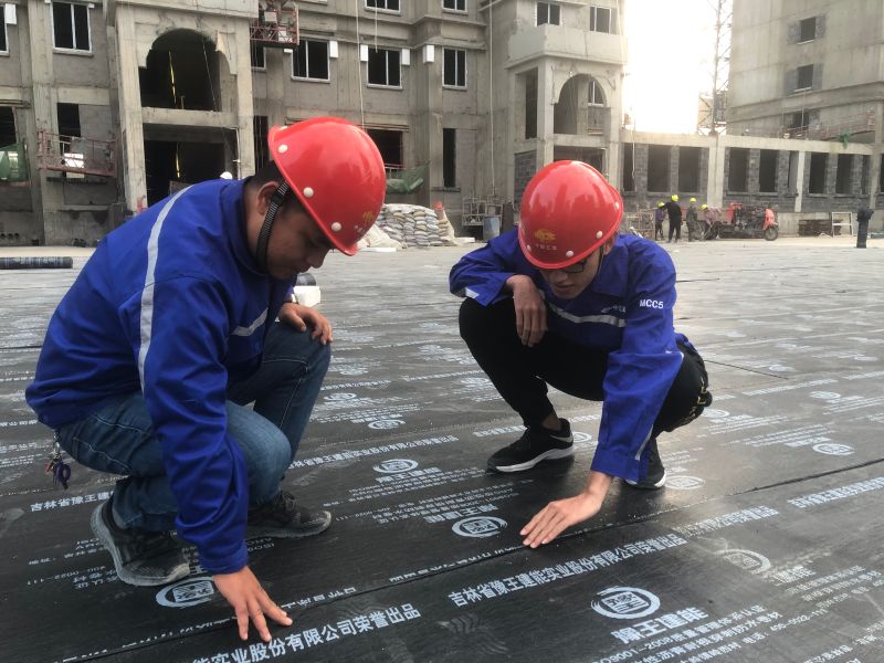 吉林松原项目部管理人员在检查地库顶板防水情况