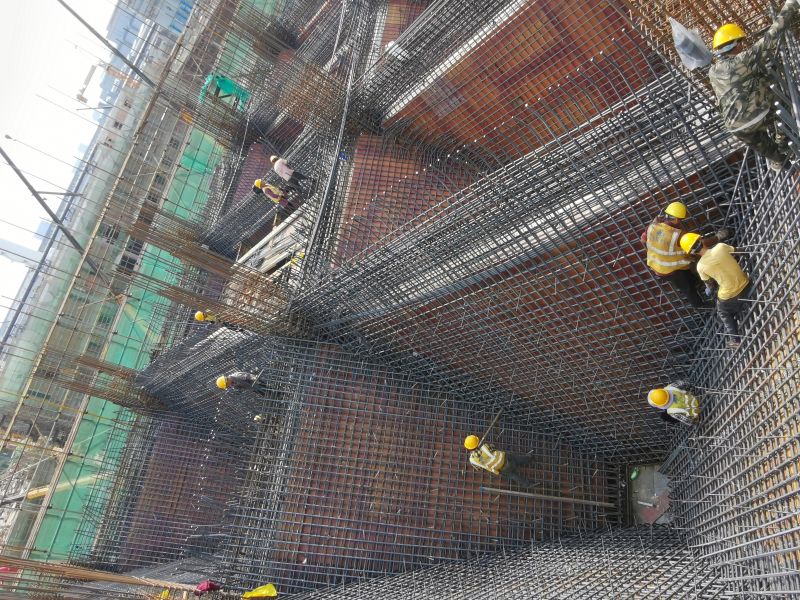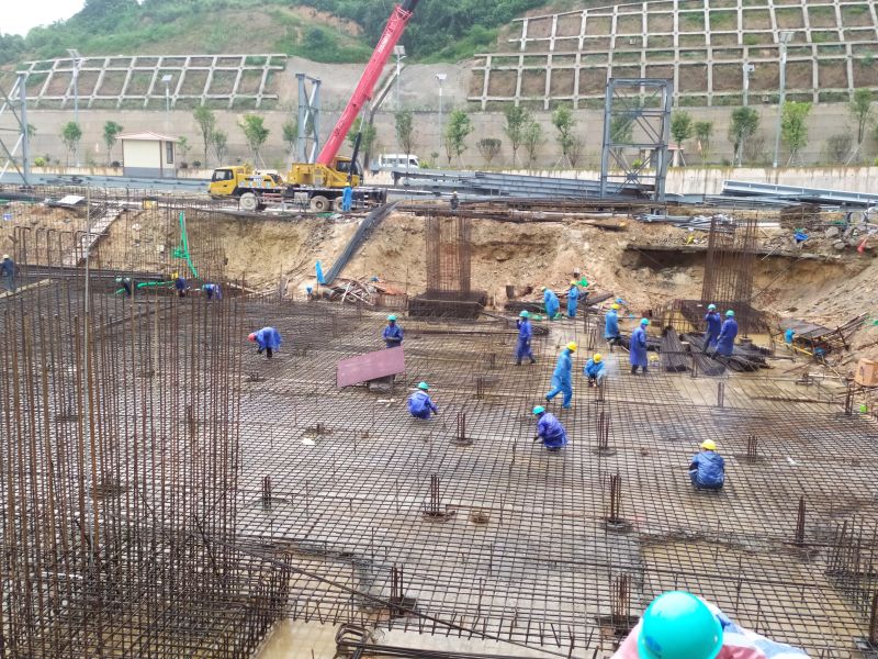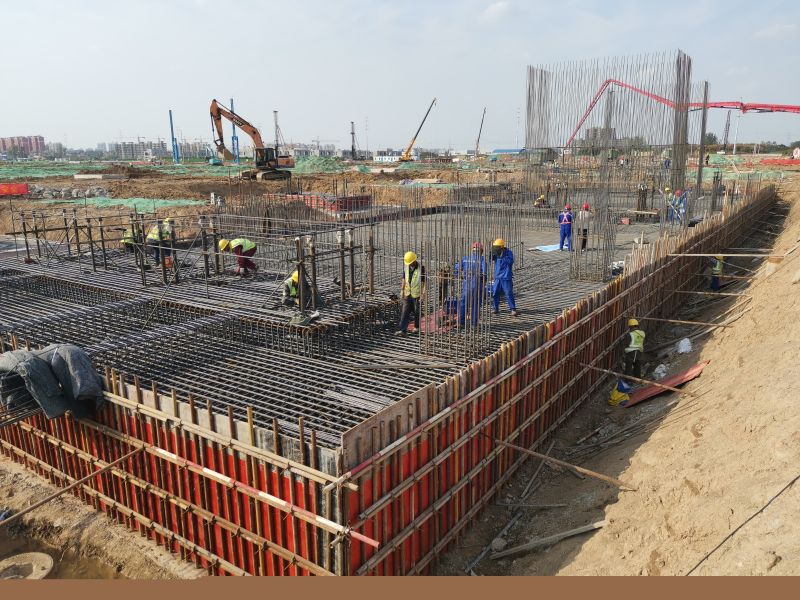 在新沂中新钢铁项目,现场管理人员及施工单位约300人全身心扑到施工一线,目前项目已进入履约高峰期,各作业区、各工种争分夺秒,唯恐掉下队来,现场呈现一片热火朝天的赶工场面。在土建一标段矿焦槽,工人们连续完成了12个料斗的混凝土浇筑工作,混凝土浇筑量达1000方,槽前转运站、喷煤主厂房也已逐步完成基础施工。由于矿焦槽施工作业料斗多、面积大、斗深且分布密集,对脚手架搭设、支模、钢筋绑扎和混凝土浇筑等工种作业形成极大的挑战。为此,项目管理人员制定了详细的施工方案,严格做好安全技术交底工作,加强了施工过程中安全管控和质量控制。在土建二标段,工人们正在进行地下料仓和净循环水泵房封顶工作。