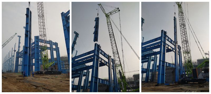 11月16日上午8:00,在河南安钢周口炼钢连铸项目C标段施工现场,高跨上部柱一根长约为25米、单体重量达72吨的钢结构顺利吊装完成。