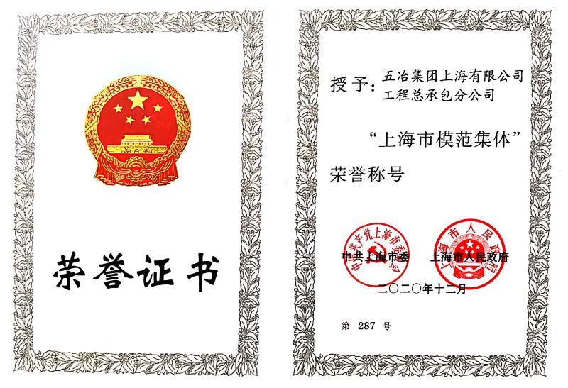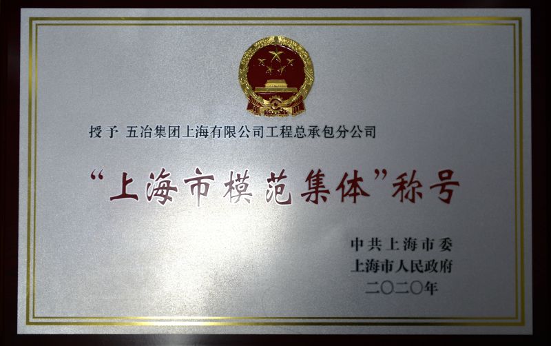 12月2日下午,在2020年上海市劳动模范(先进工作者)和上海市模范集体表彰会大会上,五冶集团上海有限公司工程总承包公司被授予“上海市模范集体”荣誉称号。