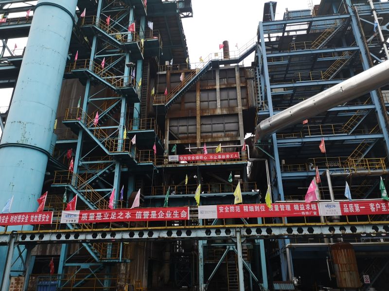 项目位于江苏省南京市雨花台区梅山钢铁股份有限公司厂区内。此次大修我方承担了干熄焦系统炉窑部分的检修任务,主要工作内容包括干熄焦本体斜道支柱砖修缮,预存段全部拆除、砌筑一次除尘器修缮,侧墙、斜墙修缮,水封槽、水封盖、双叉浇注等,项目计划工期28天,工程总量达200余吨。